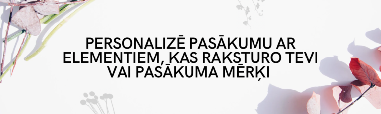 Katram notikumam ir sirds — galvenā ideja, kas šim notikumam piešķir dzīvību. Sāc vispirms, vizualizēt gaisotni, tēmu un emocijas, kuras vēlies radīt – norises vietai, dekoriem un pat mazākajām detaļām ir jāsaskan ar šo redzējumu.